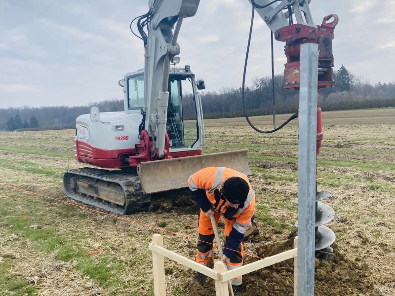 - Die Schraubfundamente haben wir anfangs April termingerecht gesetzt. Ebenso ist die Erschließung mit Strom und Wasser fertiggestellt.